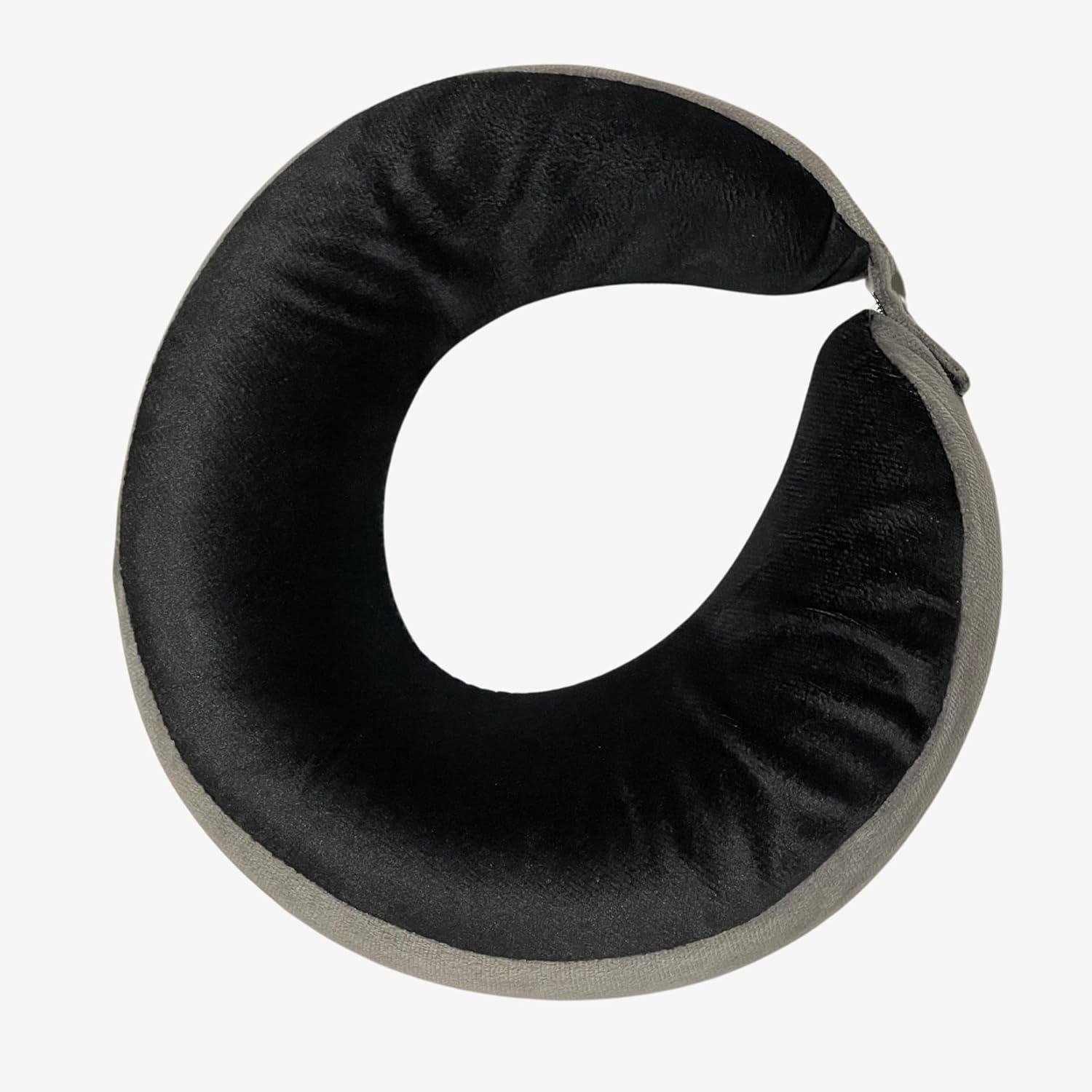 FITMAT 100% Memory Foam Neck Pillow for Travelling, Aeroplane Travel Comfortable, Sleeping, Head Rest Neck Holder Pillow - Silver & Black