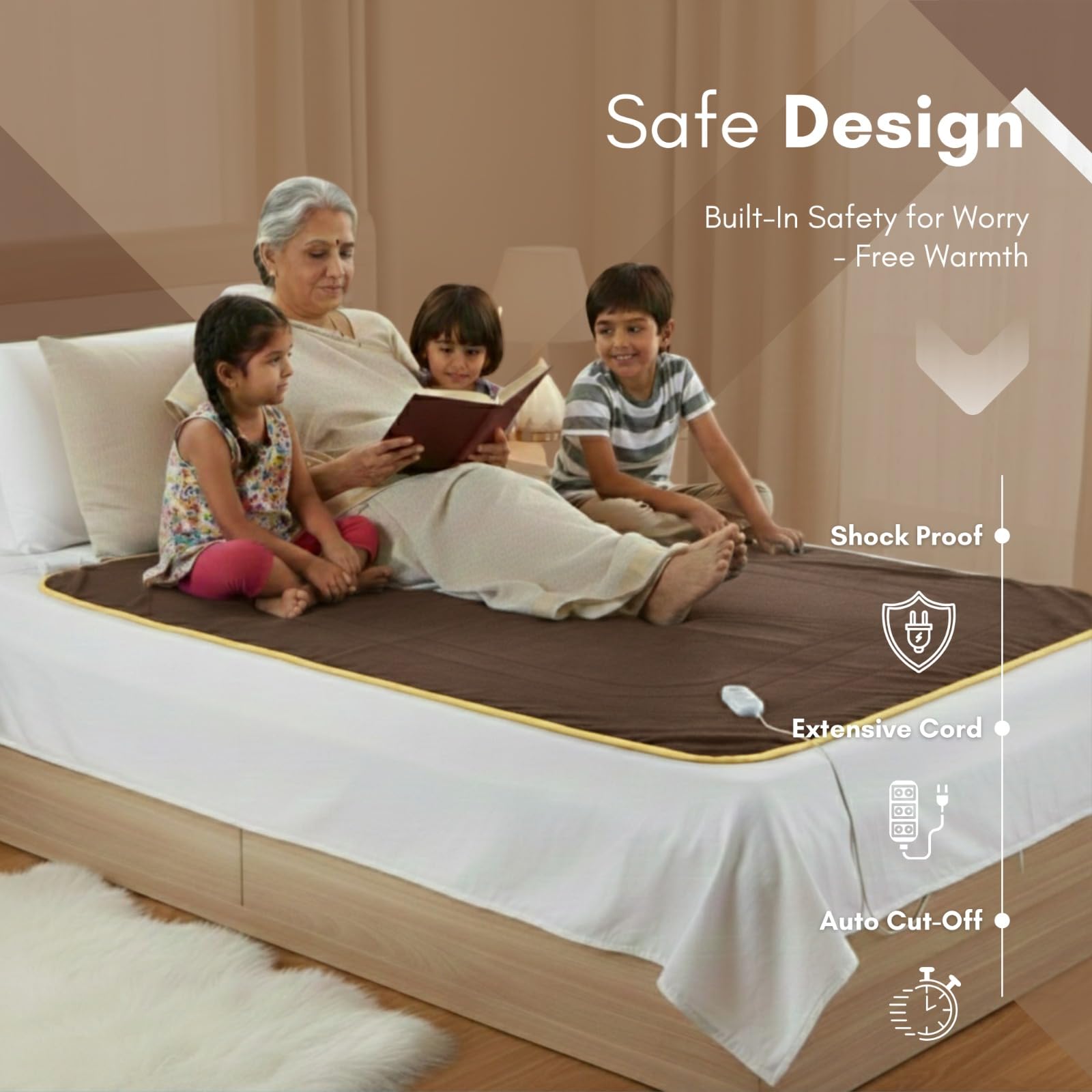 FITMAT Electric Blanket for Winter – Double Bed Heated Blanket/Warmer (152L x 152W cm) with Overheat Protection, Auto Shut-Off, Fast Heating, Soft & Comfortable | Safe and Secure