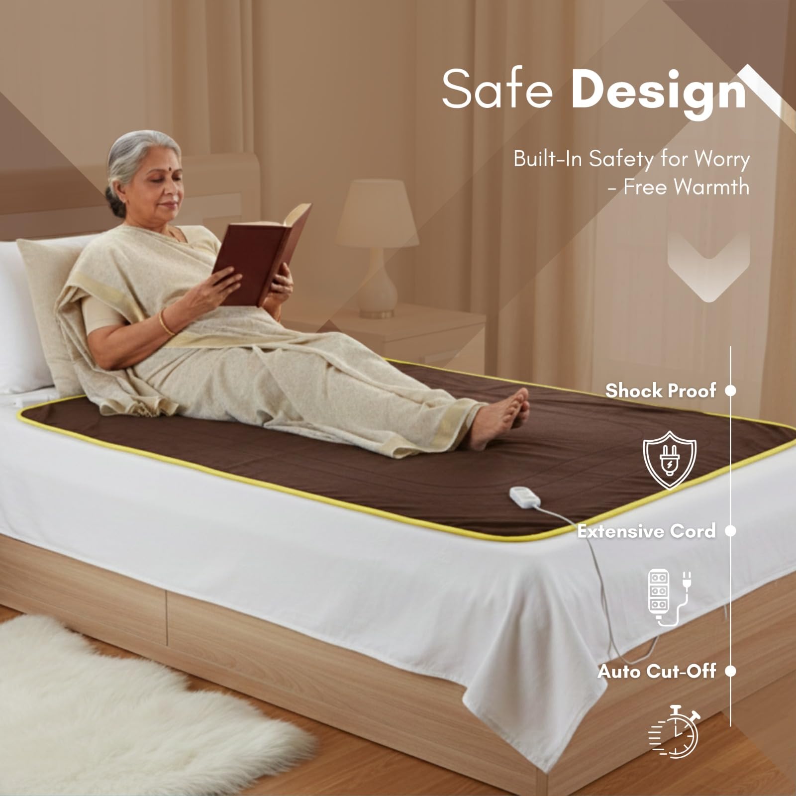 FITMAT Electric Blanket for Winter – Single Bed Heated Blanket/Warmer(152L x 76W cm) with Overheat Protection, Auto Shut-Off, Fast Heating, Soft & Comfortable | Ideal for Cozy Sleep